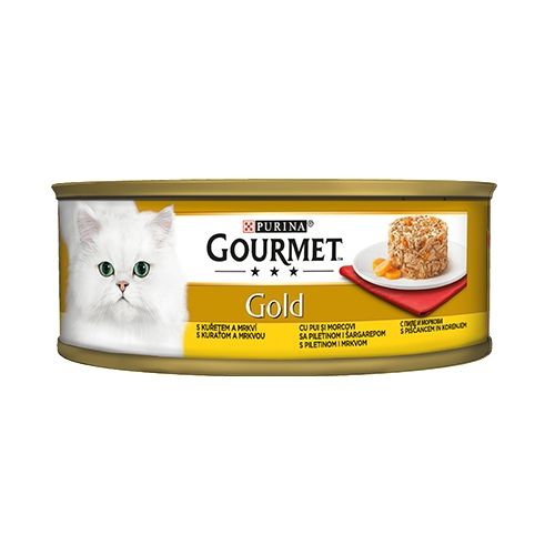 Гледай видеотоКотка Храна за котки Мокра храна Purina Gourmet Gold Savoury Cake – Chicken and Carrot 85 гр – Мокра храна за котка с пиле и морков