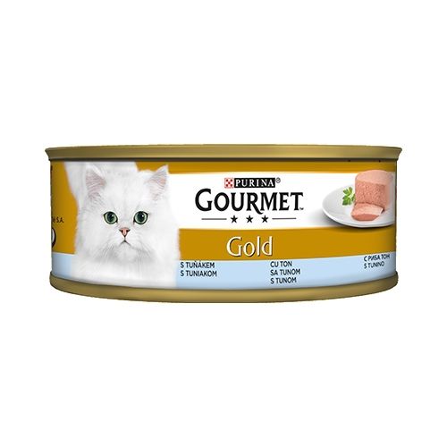 Гледай видеотоКотка Храна за котки Мокра храна Purina Gourmet Gold – Tuna 85 гр – Мокра храна за котка с риба тон