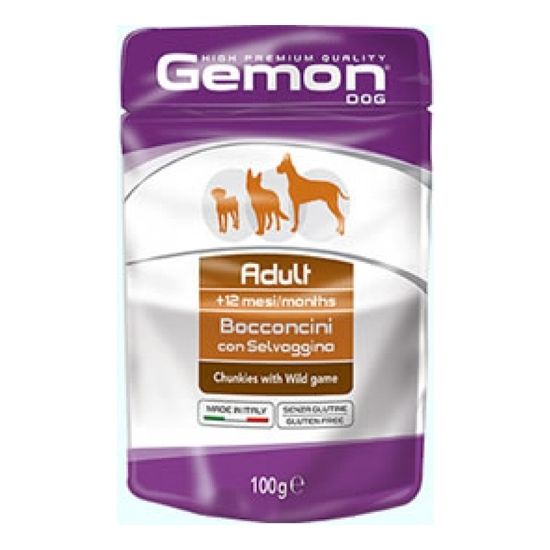 Хапки Gemon с дивеч са пълноценна храна за израснали кучета на възраст над 12 месеца.
