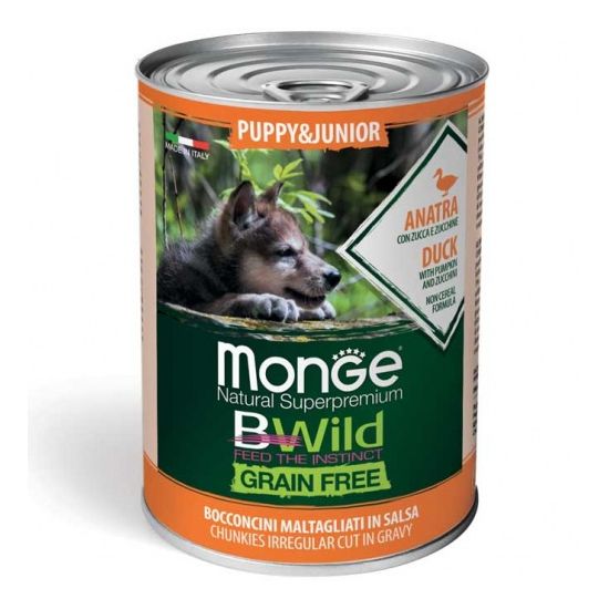 Monge BWILD Grain Free – Duck with Pumpkin and Zucchini – Puppy&Junior