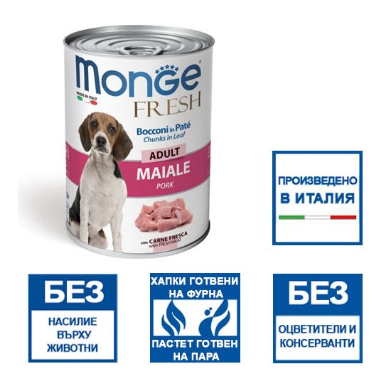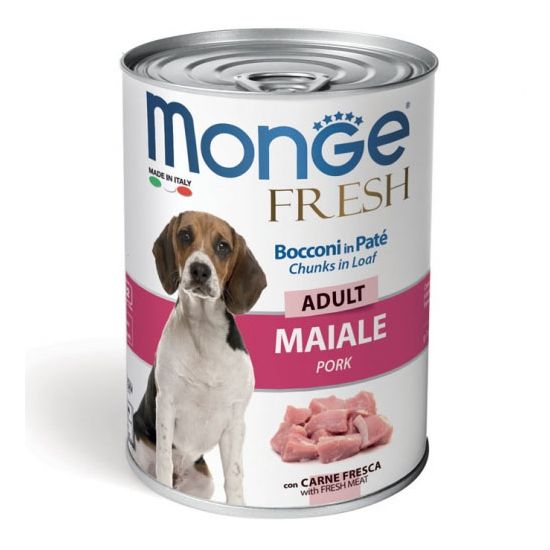 Monge Fresh Dog Adult Chunks in Loaf with Pork – консерва със свинско – хапки в пастет за кучета в зряла възраст.