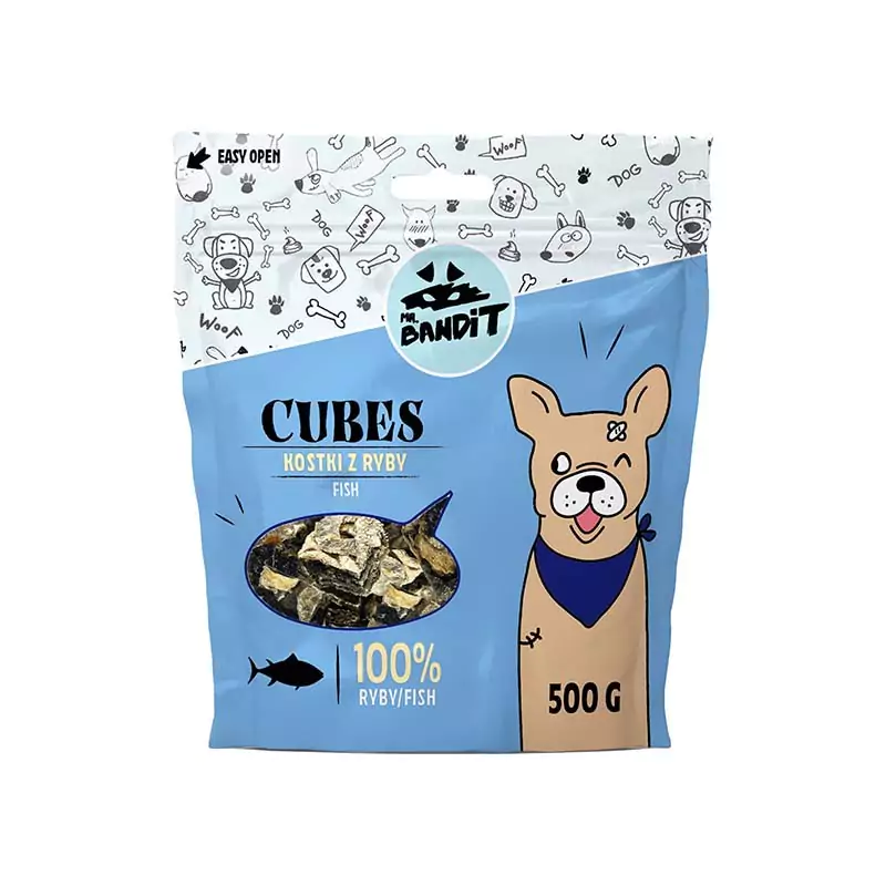 Куче Лакомства за кучета Меки и дъвчащи лакомства Mr. Bandit CUBES Fish – деликатесно лакомство с риба за кучета 500 гр.