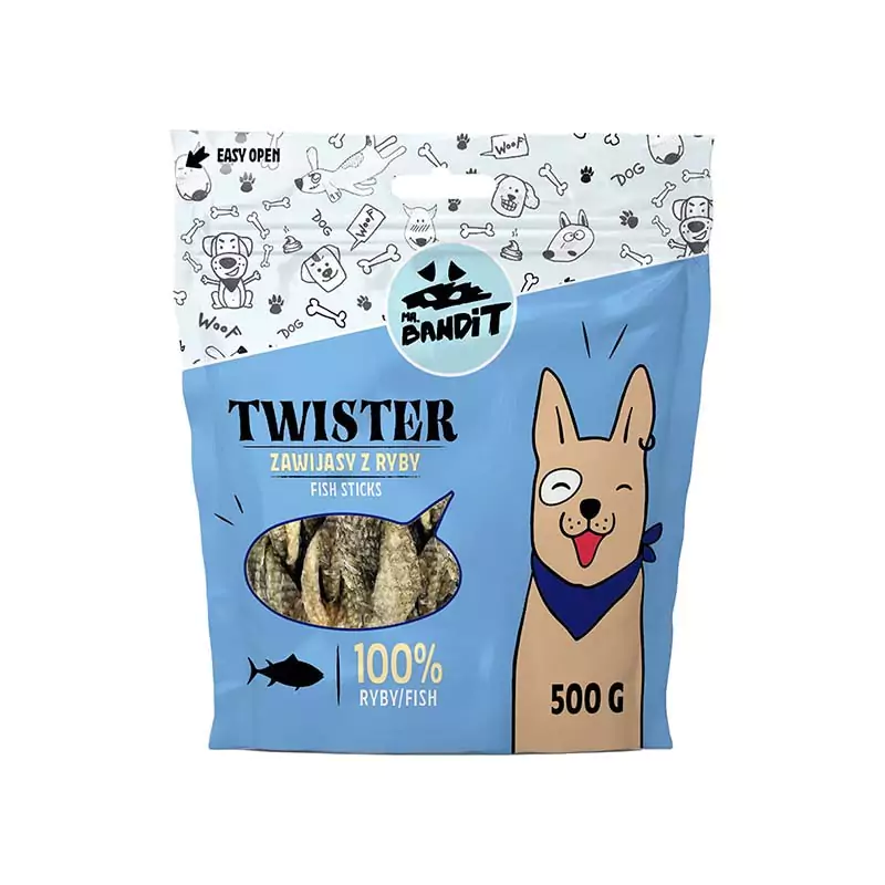 Куче Лакомства за кучета Меки и дъвчащи лакомства Mr. Bandit TWISTER Fish sticks – деликатесно лакомство с риба за кучета 500 гр.