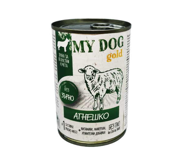 Състав: Прясно месо и месни продукти (35%), прясно агнешко месо (мин. 4%), зеленчуков концентрат, минерали.