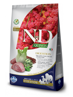 N and D – QUINOA DIGESTION LAMB – Пълноценна храна за кучета в зряла възраст с агнешко, киноа, копър и артишок.