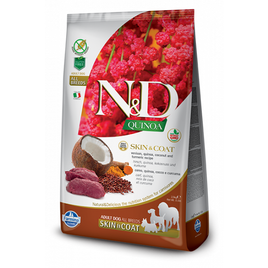 Състав: прясно обезкостено еленско (18%), дехидратирано еленско (18%), скорбяла от грах, рибено масло (от херинга), семена киноа (8%), ленено семе, сушен кокос (2.5%), куркума (2.5%), инулин, фрукто-олигозахариди, екстракт от мая (източник на мано-олигозахариди), калциев карбонат, дикалциев фосфат, псилиум, калиев хлорид, натриев хлорид, суха бирена мая, глюкозамин, хондроитин сулфат, екстракт от невен (източник на лутеин).