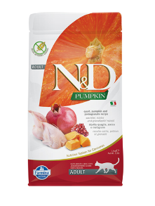 Пълноценна храна за котки в зряла възраст с пъдпъдък, тиква и нар.