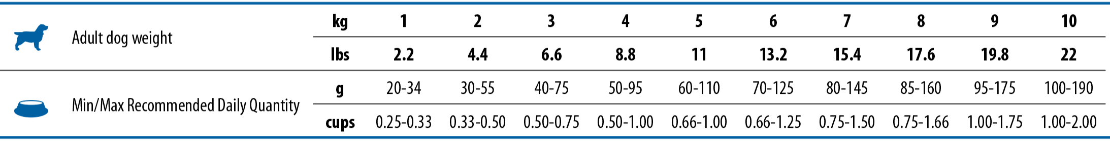Състав: обезкостено пиле (20%), дехидратиран пилешки протеин (20%), спелта (12%), овесени ядки (12%), пилешка мазнина, дехидратиран протеин от херинга, сушена пулпа от цвекло, рибено масло (от херинга), сушени моркови, брашно от люцерна , инулин, фруктоолигозахариди, екстракт от дрожди (източник на мано-олигозахариди), сушен банан (0,5%), сушено киви (0,5%), сушено манго (0,5%), сушена папая (0,5%), сушен ананас (0,5%) ), изсушен спанак, люспи и семена от псилиум, натриев хлорид, суха бирена мая, куркума, екстракт от алое вера, глюкозамин, хондроитин сулфат.