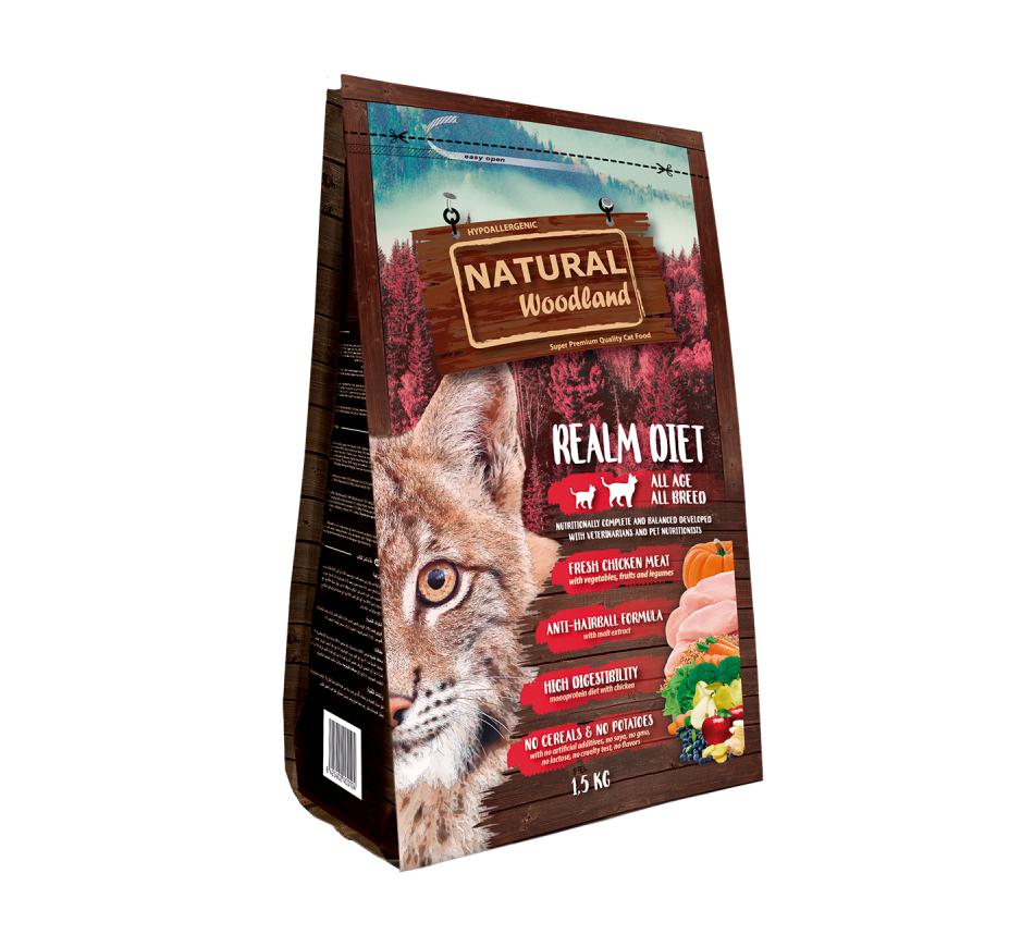 Natural Woodland Realm Diet е пълноценна, хипоалергенна, високо смилаема храна с прясно пилешко