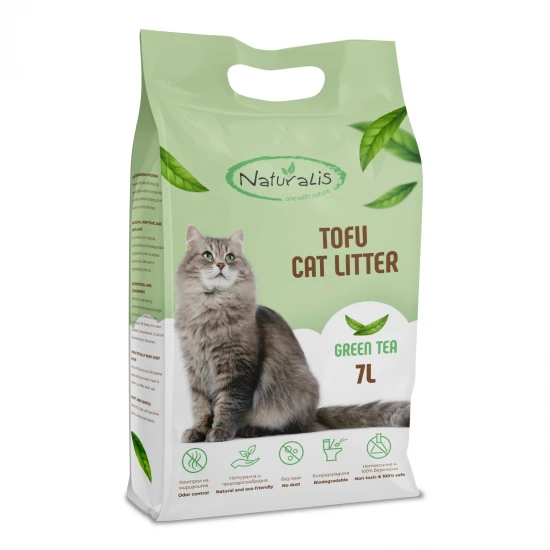 Бъдете едно с Майката Природа или поне направете един избор в нейна полза! Naturalis Tofu Cat Litter е 100% биоразградима котешка тоалетна на основата на соя с мек аромат. Този уникален продукт е направен от неразтворимите части на соево зърно, които се получават след производството на соеви продукти. Обикновено тези неразтворими части се изхвърлят, но Naturalis въвежда втора цел за този „отпадъчен“ материал, превръщайки го в изключителна котешка тоалетна с невероятни абсорбиращи свойства. Този природосъобразен продукт сформира здрави и компактни бучки при контакт с котешката урина, като неутрализира лошите аромати и поддържа дома Ви чист. Отпадъците могат да бъдат изхвърлени в канала, което прави продукта още по-удобе