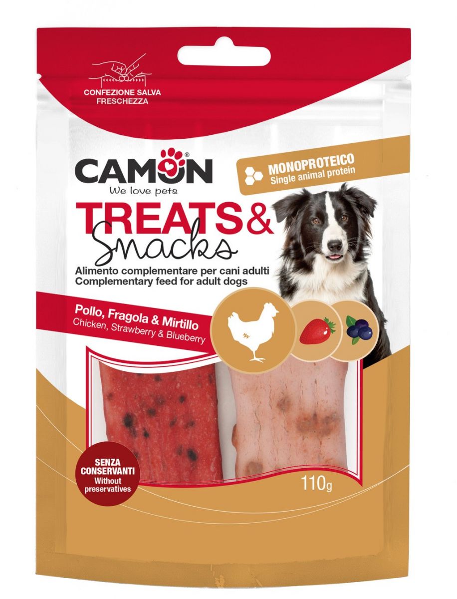 Допълваща храна за кучета пилешки сладолед с ягоди и боровинки. 110гр. – 10х4х1,5см.
