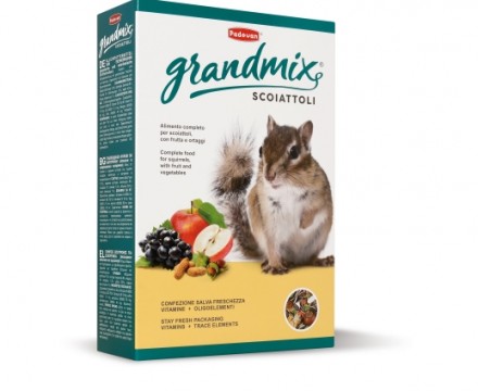 Храна за гризачи с високо съдържание на въглехидрати, която ще осигури на Вашия домашен любимец, необходимите резерви от енергия и да отговаря на техните нужди за движение и игри. GRANDMIX scoiattoli – съдържа семена, подбрани в оптимални пропорции, и е обогатена с плодове, зърнени храни и билки.