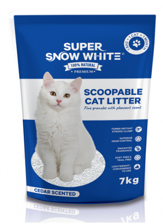 Котка Котешки тоалетни и аксесоари Пълнеж за тоалетни Пълнеж за котешка тоалетна с аромат на кедрово дърво 7 кг. – Pura Super Snow White
