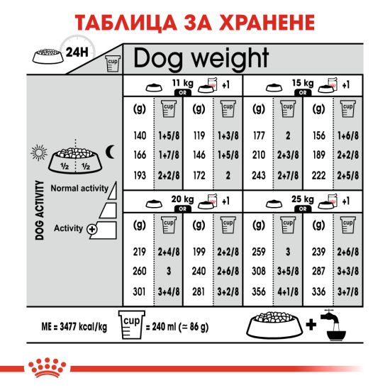 Метаболизмът на вашето куче често се забавя след кастрация и може да откриете, че кучето е по-щастливо на дивана отколкото да приключенства, но то все още е гладно при хранене. ROYAL CANIN® Sterilised Medium е подходяща за кастрирани кучета с тегло в зряла възраст от 11 до 25кг. Изключително вкусната рецепта засища глада на вашето куче с висококачествени хранителни вещества, специално подбрани да го поддържат в добра форма и активно. Умереното съдържание на мазнини в ROYAL CANIN® Sterilised Medium помага на вашето куче да избягва усложненията за здравето, които са обвързани с излишно тегло. Формулирана с по-малко диетични мазнини, тази храна помага на вашето куче да се чувства заситено като осигурява редовна и правилна чревна проходимост за по-добро храносмилане. Какво още? ROYAL CANIN® Sterilised Medium има високо съдържание на протеин, което помага на вашето куче да поддържа мускулната маса като същевременно са намалени мазнините и калориите. ROYAL CANIN® Sterilised Medium е научно доказана с 10% по-малко калории от нормалната храна за кучета в зряла възраст. Това означава, че резултатите на ROYAL CANIN® Sterilised Medium са с доказан успех. Нашата Sterilised хранителна програма има два компонента: хрупкави гранули и вкусен пастет в пауч – и двете храни са пълноценни и перфектно се допълват една друга. А защо да не пробвате вкусно допълнение към гранулите?
