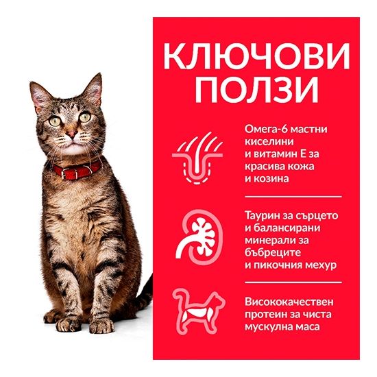 Храна с отличен вкус за дълъг и щастлив живот. Вие и Вашият любимец имате дълбока и специална връзка. Защото всеки миг, който прекарвате заедно, е специален, и именно затова ние се стараем да ви дарим с повече такива мигове. Благодарение на висококачествените си съставки и подходящите хранителни вещества, Hill’s Science Plan дава на Вашата котка храната, от която се нуждае, за да бъде здрава и щастлива през целия си живот.