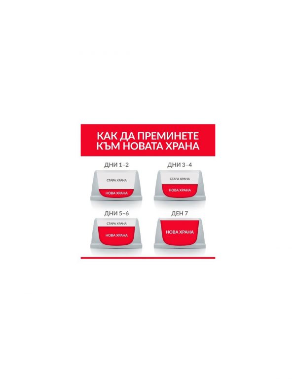 - За пръв път ползвате тази храна? Смесвайте увеличаващо се количество от новата храна с намаляващо количество от старата храна в рамките на 7 дни.