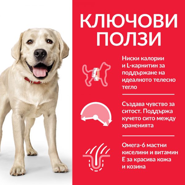 Кучета от едри породи в зряла възраст, 1–5 години, които се нуждаят от по-малко калории (т.е. кучета, които са по-слабо активни, кастрирани или склонни към напълняване по друга причина).