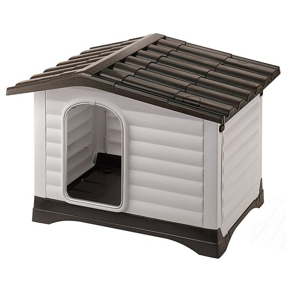 Изработена от здрава термопластична смола, устойчив на удари и UV лъчи материал, Dogvilla е развъдник за кучета на открито, оборудван със система за отваряне от страничната стена (патентована). Отварящият панел може да се монтира отдясно или отляво. Веднъж отворена, тя се превръща в удобна платформа, лежаща на земята, давайки на вашето куче много повече пространство. Идеален за всички сезони, затворен през зимата или отворен през лятото, развъдникът Dogvilla е оборудван с вентилационна система, която осигурява отлична вътрешна вентилация, избягвайки образуването на влага, като по този начин гарантира суха среда през цялото време; основата е проектирана със специални слотове, които позволяват на водата да изтича от кошарата.