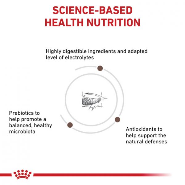 СЪСТАВ: дехидратиран птичи протеин*, животински мазнини*, ориз*, пшеничен глутен*, царевично брашно*, хидролизиран птичи черен дроб*, продукти от мая, минерали, рибено масло*, пулп от цвекло, изсушени яйчни продукти*, растителни влакнини, соево масло*, люспи и семена от псилиум (произход на слизестите съставки), фрукто-олигозахариди (0,5%), хидролизирана мая (източник на мано-олигозахариди (0.2%) и бета глюкани), екстракт от невен (източник на лутеин). *лесноусвояеми съставки.