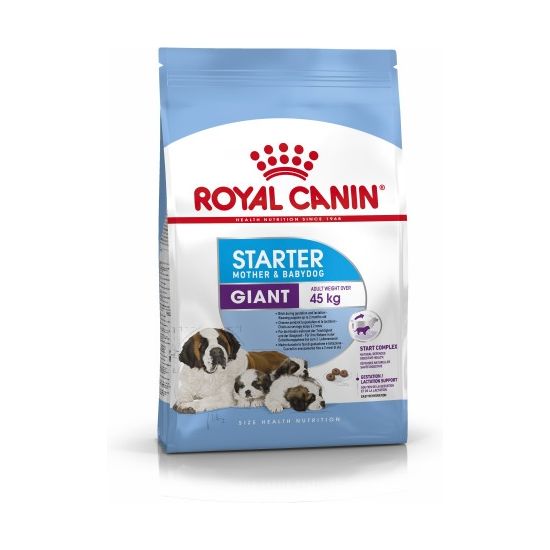 ROYAL CANIN® Giant Starter Mother & Babydog е специално формулирана за удовлетворяване на хранителните потребности на новите майки и техните кученца. Тази формула е подходяща за кучета от гигантски породи в зряла възраст (тегло над 45 кг), както и за кученца в периода на отбиване до 2 месеца.