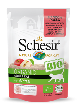 Състав: Месо и Животински производни* (33% Говеждо, 33% Пиле*), 4% Плодове (Ябълка), 1% Минерали, Мазнини* (0.1% ленено масло*) *био продукти