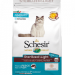Schesir Dry Line Sterilized &, Light, богата на риба, без други допълнителни животински протеини, е храна: с естествени съставки *, плюс витамини и минерали без добавени оцветители и консерванти формулиран само с рибни протеини лесно смилаем със съставки с пребиотично действие контрол на теглото благодарение на ниско съдържание на мазнини в сравнение с поддържащия продукт и високо съдържание на фибри с бирена мая и биотин за поддържане на здрави козина и кожа с правилния баланс на Омега 3 и Омега 6 интегриран със специална смес от ароматни растителни екстракти със синергично антиоксидантно действие за защита на клетките срещу свободните радикали, борба срещу стареенето на клетките.