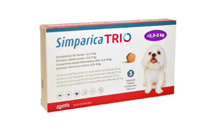 Simparica Trio – Симпарика трио таблетки за дъвчене за кучета от 2.5 до 5 кг
