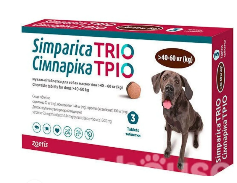 Таблетките Simparica Trio са овкусени и с лекота се приемат от повечето кучета, когато се предлагат от стопанина. Ако таблетката не се приема доброволно от кучето, тя може да се прилага и с храна или директно в устата. Таблетките не трябва да се разделят.