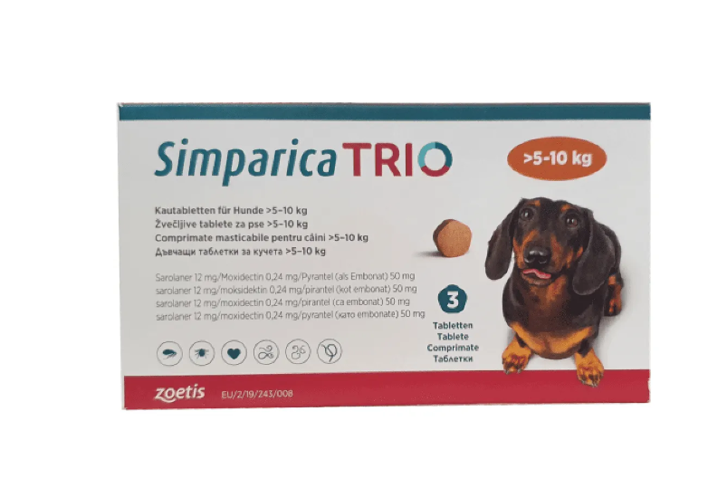 Simparica Trio – Симпарика трио таблетки за дъвчене за кучета от 5 до 10 кг