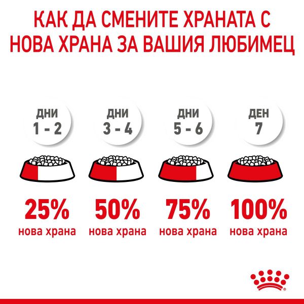 В краткия период от 8 седмици вашите кученца имат нужда от храна, която е специално адаптирана за удовлетворяване на техните хранителни потребности и подготвянето им за следващата фаза на растеж. На този етап можете да преминете към ROYAL CANIN® Medium Puppy, налична под формата на суха храна на гранули.