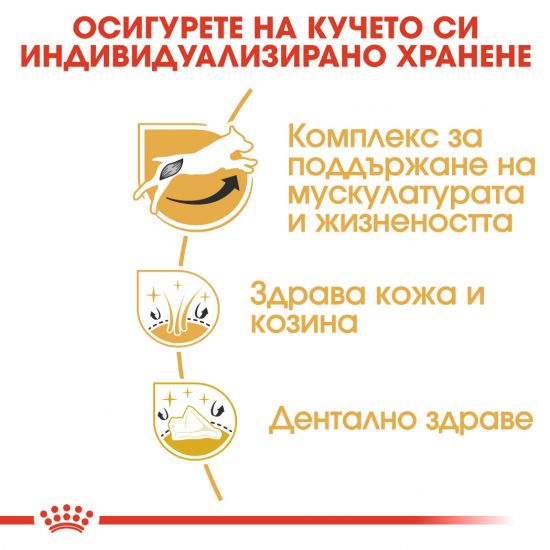 Комплекс за мускули и жизненост: Джак ръсел териерът е известен със своя жизнен темперамент. Тази формула допринася за поддържане на мускулната маса благодарение на адаптираното съдържание на протеин. Освен това е обогатена и с комплекс от антиоксиданти, за да поддържа жизнеността на джак ръсел териера.