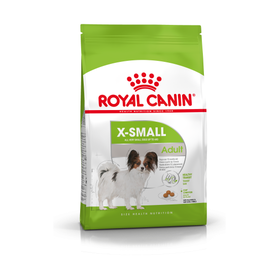 Подходяща за много дребни кучета над 10 месеца с тегло в зряла възраст до 4кг, ROYAL CANIN® X-Small Adult е специално формулирана за всички хранителни нужди на кучета от дребни породи. ROYAL CANIN® X-Small Adult съдържа вискокачествени протеини (L.I.P.) специално подбрани за по-лесна усвояемост. Тези протеини комбинирани с балансиран прием на фибри като псилиум помага за поддържане на правилната чревна проходимост. В допълнение, ROYAL CANIN® X-Small Adult подпомага здравата уринарна система при много дребни кучета като вашето. Обогатена с омега- 3 мастни киселини (ЕПА и ДХА), ROYAL CANIN® X-Small Adult подпомага доброто състояние на кожата. Богатото разнообразие от включени витамини помага за засилване на бариерната функция на кожата на вашето куче като по този начин подпомага поддържането здравето на кожата. Гранулата на ROYAL CANIN® X-Small Adult е специално адаптирана да отговори на тези особени породи. Формата, размерът и текстурата са перфектни за миниатюрните челюсти.