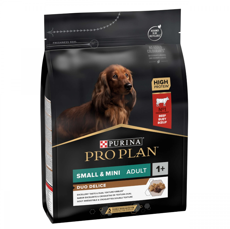 Знаем, че здравословен живот без щастие просто не е достатъчен. Затова създадохме новата PRO PLAN® Duo Délice в комбинация с хрупкави гранули и фино нарязани парченца любов. Твоят четириног приятел ще е доволен, че го глезиш с невероятен вкус, а ти от своя страна няма да имаш никакви съмнения, че му осигуряваш полезно хапване. Най-сетне – кучешка храна без компромиси.