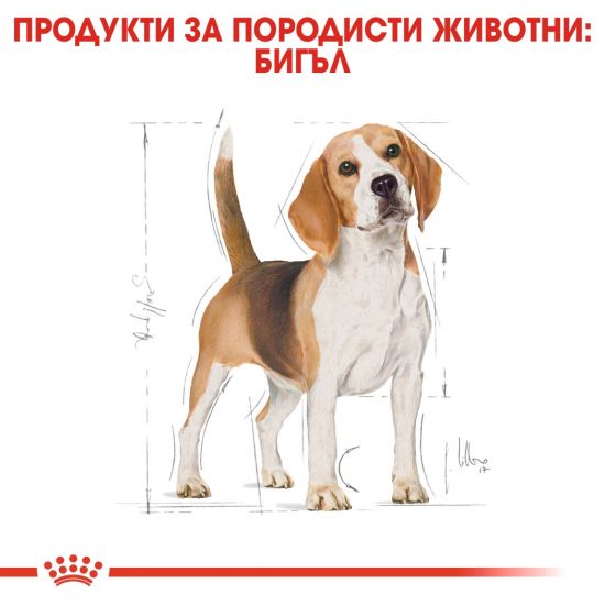 Бигълите са весели и интелигентни кучета, с които е лесно да се живее. Храненето е важна част от поддържането на оптимално здраве за бигълът в зряла възраст – поради тази причина храната, която избирате е изключително важна за вашето куче. Подходяща за бигъли над 12 месеца, ROYAL CANIN® Beagle Adult е специално формулирана с всички хранителни вещества за нуждите на вашето куче. ROYAL CANIN® Beagle Adult помага за поддържането на идеалното телесно тегло благодарение на адаптираното съдържание на калории. Тя съдържа и комбинация от фибри, която придава чувство на ситост у бигълите и помага за поддържане на здравословно храносмилане и регулиране образуването на изпражнения. Гранулата на ROYAL CANIN® Beagle Adult е с ексклузивна форма и адаптирана за породата бигъл като помага за намаляване скоростта на свръхрадостния прием на храната, като стимулира дъвченето за по-добро храносмилане. Неговият естествен ентусиазъм да вземе участие във всичко в домакинството, особено физическото натоварване и активностите навън, означава, че вашият бигъл е много активно куче. Здравето на опорно-двигателният апарат може да се подпомогне с храна, която осигурява достатъчно количество адаптирани хранителни вещества. Поради тази причина ROYAL CANIN® Beagle Adult съдържа специална формула обогатена с омега- 3 мастни киселини като ЕПА и ДХА за подпомагане здравето на костите и ставите на бигълите.