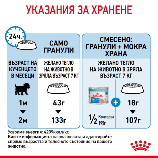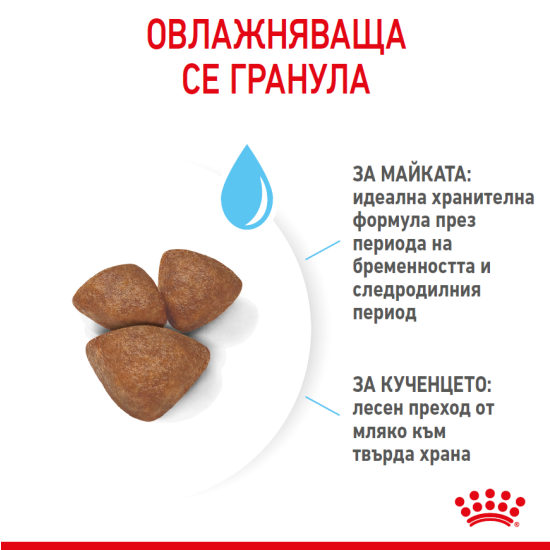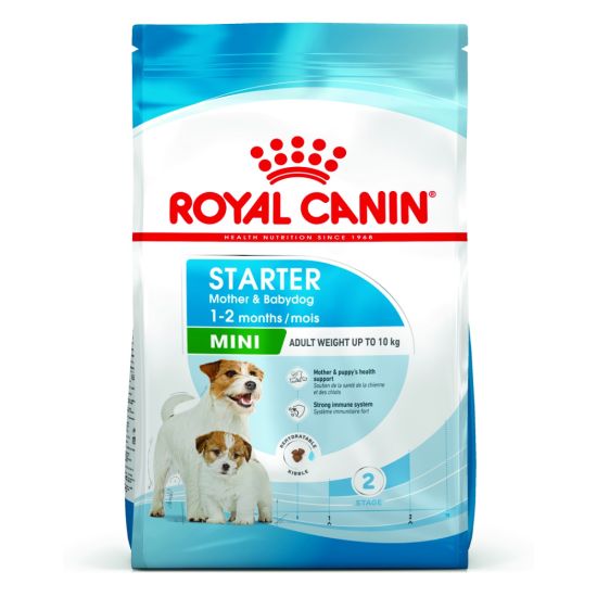 ROYAL CANIN® Mini Starter Mother & Babydog е специално формулирана да поддържа хранителните нужди на новите майки и техните кученца. Тази формула е подходяща за кучета в зряла възраст от дребни породи (с тегло до 10 кг) и кученца от отбиването до 2-месечна възраст.