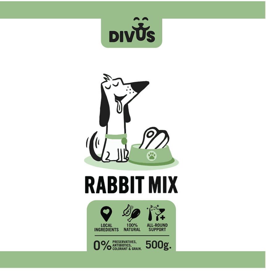 •Съдържа 2 вида меса – пилешко и и заешко от български ферми.