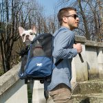 Кошът е удобен за животното: широките мрежести прозорци осигуряват подходяща вентилация. Предната част се отваря с цип, за лесен достъп до вашия домашен любимец вътре. Ако е необходимо, мрежата може да се навие и да се задържи на място с централна пластмасова кука. Вътре в раницата има предпазен колан, който може да се закачи за нашийника или колана за гърдите на вашия домашен любимец.