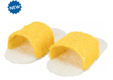 Гледай видеотоМалки животни Играчки за малки животни Trixie – Комплект играчка чехли от луфа, които могат да се напълнят с лакомства 8см.