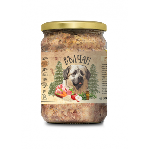 Пуешко месо – 16% – леко, лесно усвоимо и с ниско съдържание на мазнини. Пуешкото месо е отличен източник на висококачетсвен животински протеин, богат е на витамини от група Б (особено на Б6 и ниацин), който подпомага метаболизма и поддържа нервната система в добро състояние. Съдържа също цинк и селен – минерали, важни за здрава имунна система и антиоксидантна защита. Благодарение на ниския си алергенен потенциал пуешкото месо е подходящо за кучета с чувствителен стомах или хранителни непоносимости.