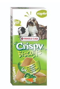 Хрупкава бисквита Дребни животни Зеленчуци 70гр – 6бр. кексчета за гризачи със зеленчуци и яйца. Лакомство за декоративни зайчета, морски свинчета и чинчили. Подходящи и за дегу. Спомагат за разнообразяване на менюто, насърчават доброто общо състояние и жизненост.