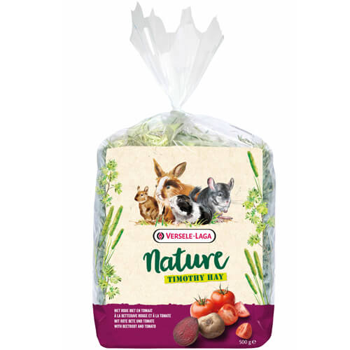 Сено с ливадна тимотейка, обогатено с цвекло и домат. Ливадна тимотейка сено (96%), цвекло (2%) , домати (2%). Вкусно ароматно сено с високо съдържание на сурови влакнини осигуряващи добро храносмилане и здрави зъби. С цвекло и домати (с вита. С) и антиоксиданти за здрав домашен любимец. Основна храна за зайци, морски свинчета, чинчили и дегута.