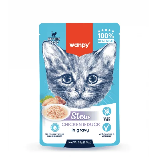 Wanpy Stew in gravy пауч за малки котенца с пиле и патица 70 г / 10 бр. СТЕК. Допълваща храна за котки.