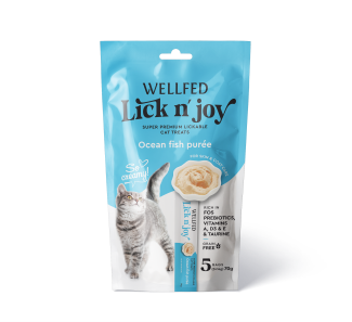 Котка Лакомства Меки и дъвчащи лакомства Wellfed – кремообразни лакомство за котки с океанска риба 5х14гр