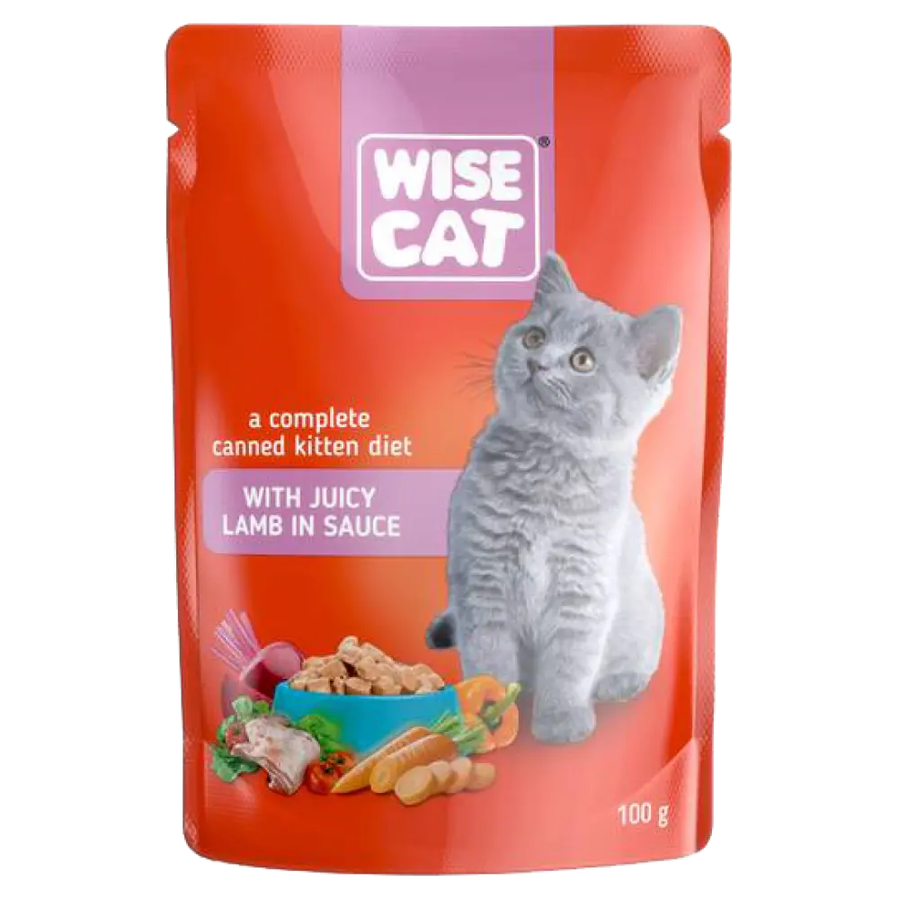 Котка Храна за котки Мокра храна Wise cat пауч за малки котенца парченца агнешко в сос 24х100 г