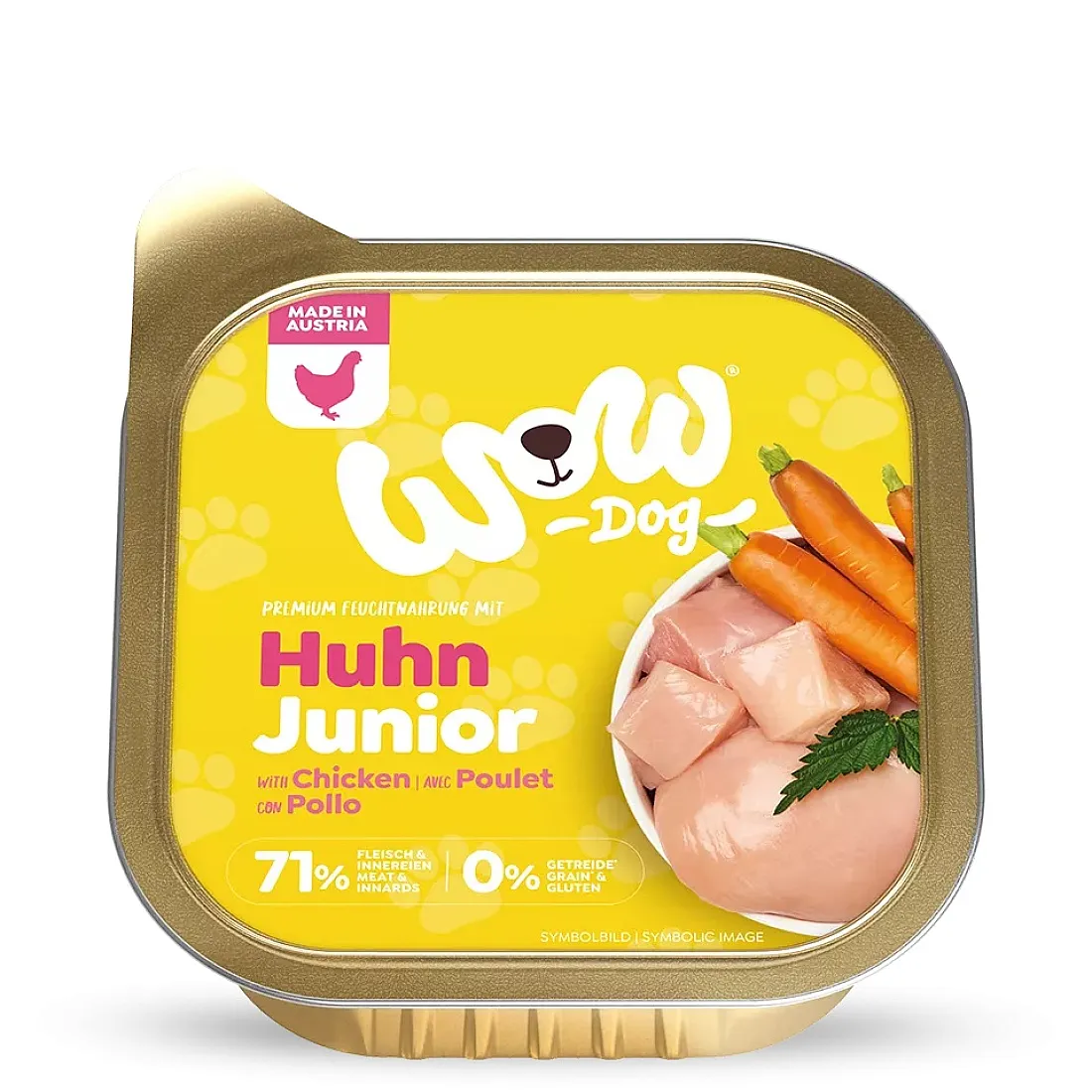 WOW Junior Chicken – лек и вкусен пастет, създаден специално за подрастващите кученца.