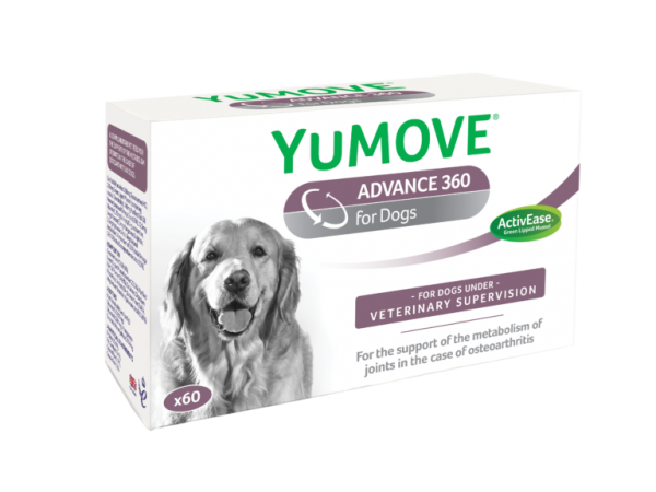 YuMOVE ADVANCE 360 for Dogs – нашата най-концентрирана и най-бързодействаща формула, която подпомага ставния метаболизъм в случай на остеоартрит. С добавени допълнително екстракт от зеленоуста мида ActiveEase® Green Lipped Mussel и Омега 3 мастни киселини, тази уникална формула подкрепя ставите и помага на кучето да се движи комфортно.
